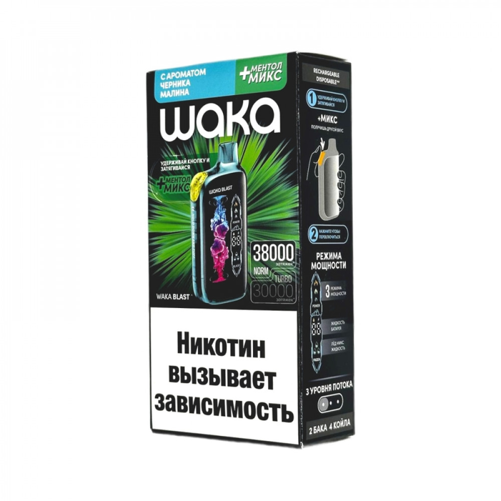 WAKA BLAST 38000 Hard - Черника малина + ментол микс - купить в Кемерово